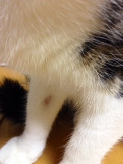 昨夜、猫の腕(前足)の内側に1.5cm程度のハゲがあるのを見つけま